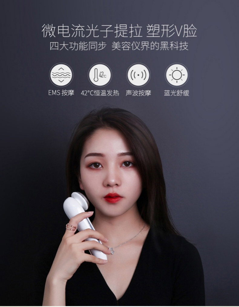 4、多功能同步的微電流光子提拉模式,塑形V臉,trophoSkin-i內置微電流光子提拉模式,EMS微電流肌肉鍛煉提拉表情股,熱敷功能激活肌膚細胞活力,光子舒緩功能輔助,四大功能同步作用,輔助臉部塑形,緊致V臉;